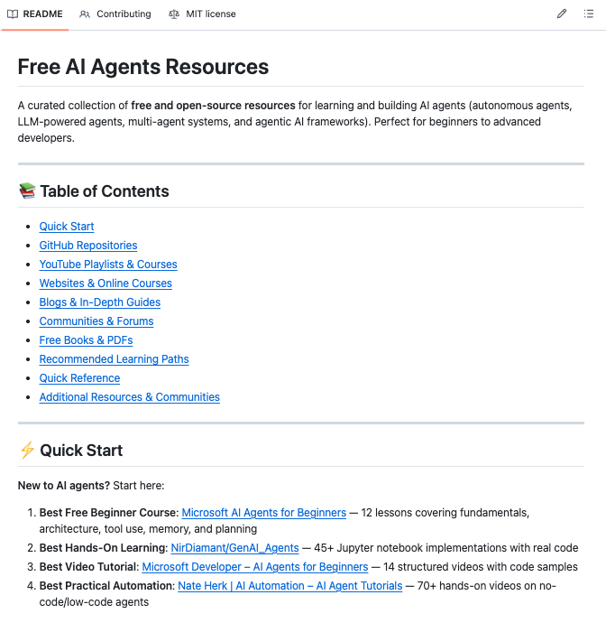 Compilation of free resources for AI agents from major companies, valuable for community.
