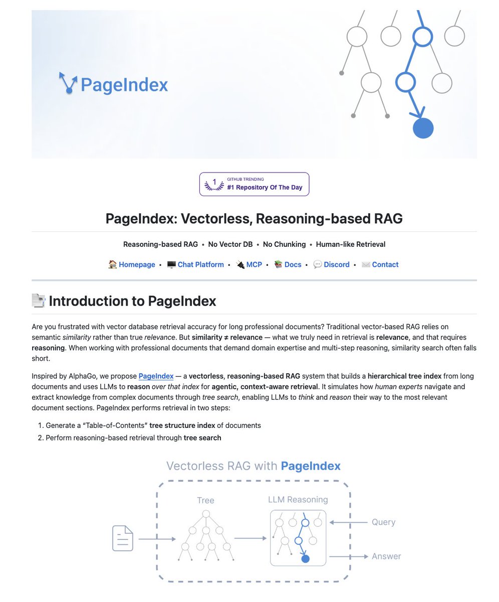Vector databases are not the future of RAG. Vectorless RAG with PageIndex just hit 98.7% accuracy on FinanceBench. NO vector database and NO chunking. 100% Opensource.