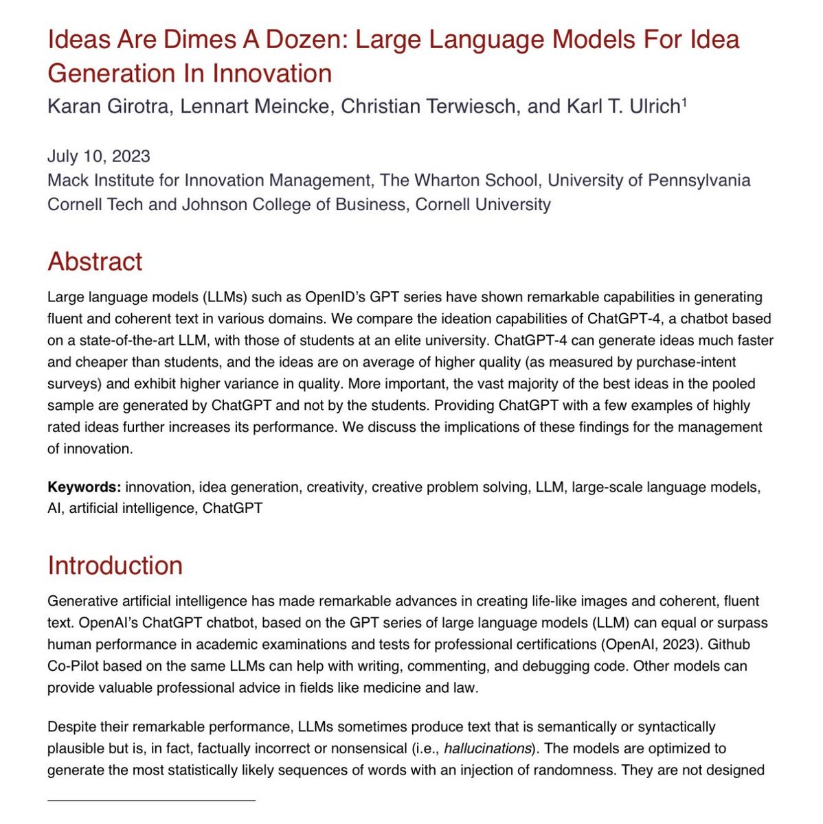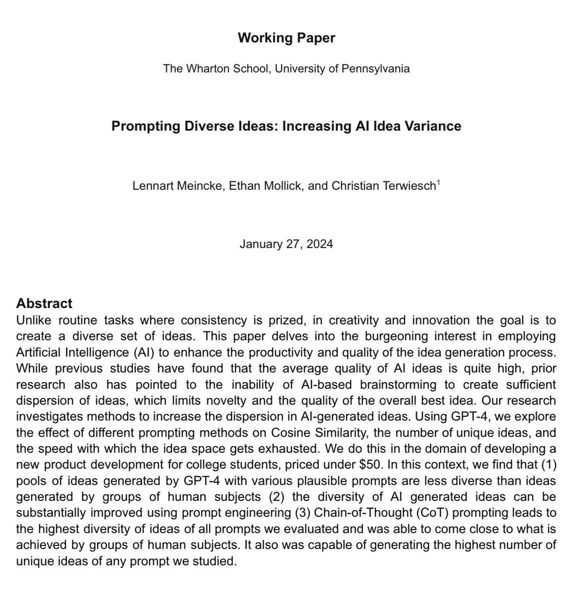 Mollick asserts AI capabilities in idea generation, with visual examples.