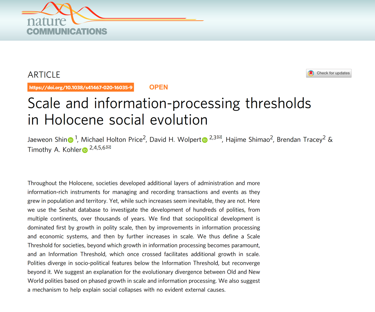 A paper by mathematicians & archeologists studying the past 10k years argues population growth needs to be matched with information processing ability... otherwise societies collapse. Each level of info processing (writing, currency) unlocks new growth. So we need IT to save us! https://x.com/emollick/status/1375287903731937282/photo/1