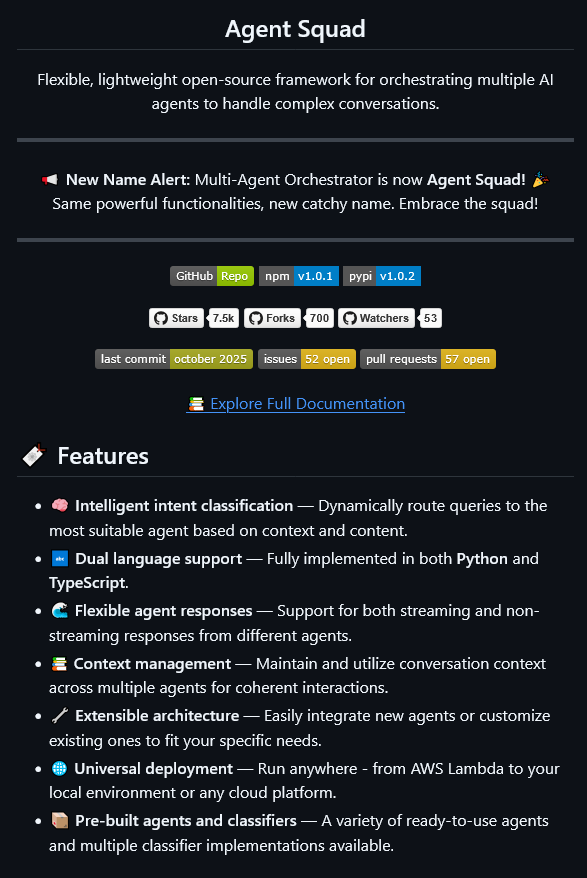 AWS Multi-Agent Squad AI framework.😗 It lets you manage multiple AI agents, dynamically route LLM queries, intent classification, maintain context across AI Agents in persistent memory, and pre-built classifiers. can be deployed locally on your computer.✨