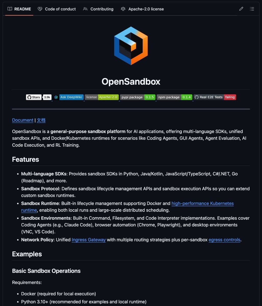 🚨 BREAKING: Alibaba just gave the AI agent community a powerful, real-world sandbox tool for free. It's called OpenSandbox and it gives any AI agent a secure, isolated environment to execute code, browse the web, and train models with a unified API across languages. ...